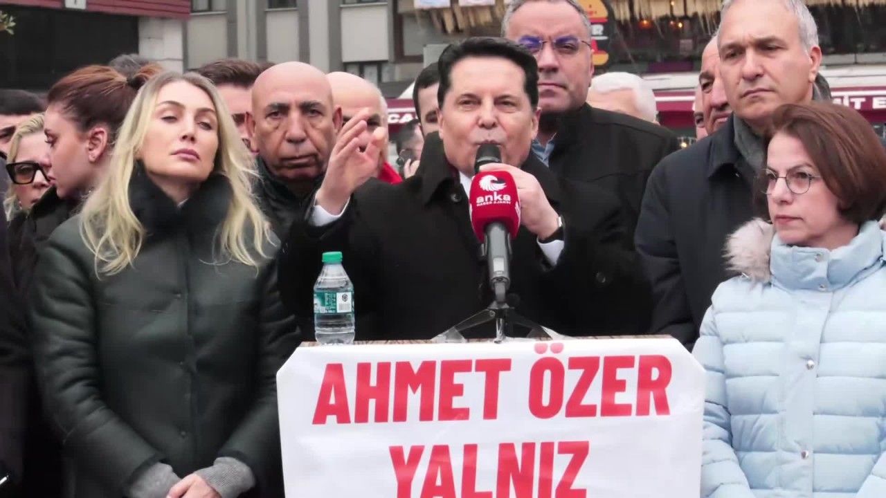 “Kent Uzlaşısı” operasyonu kapsamında görevden alınan ve yerine kayyum atanan Esenyurt Belediye Başkanı Ahmet Özer, Silivri’de görülen davada altı yıl üç ay hapis cezası almasının ardından Esenyurt Cumhuriyet Meydanı’nda basın açıklaması yaptı. Meydandaki açıklamaya CHP yöneticileri, belediye başkanları, partililer ve çok sayıda yurttaş katıldı.
