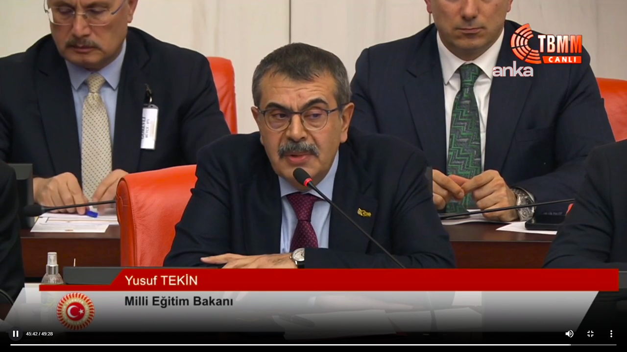 Konuşması sırasında araya giren DEM Parti Mardin Milletvekili Berivan Güneş Altın’a da yanıt veren Bakan Tekin’in sözleri Meclis’te dikkat çekti. Tekin, “Siz benden daha mı iyi biliyorsunuz? Elimde milyonlarca veri olmasına rağmen siz, elinizde hiçbir şey yokken benden daha iyi biliyorsunuz. Çok kibarsınız, tebrik ediyorum; gerçekten size yıldızlı pekiyi veriyorum, sınıfı geçtiniz” ifadelerini kullandı.