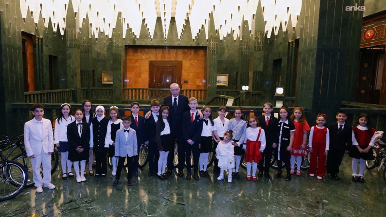 Cumhurbaşkanı Recep Tayyip Erdoğan, 23 Nisan Ulusal Egemenlik ve Çocuk Bayramı kutlamaları kapsamında geleneksel kabulünü gerçekleştirdi. Cumhurbaşkanlığı Külliyesi'nde gerçekleşen görüşmede Türkiye'nin dört bir yanından gelen çocuklar, devletin zirvesiyle bir araya geldi.