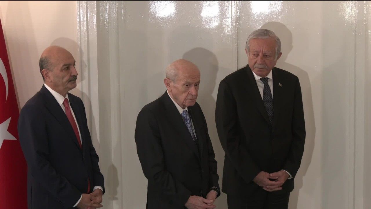 DEM Parti İmralı Heyeti üyeleri Pervin Buldan, Mithat Sancar ve Faik Özgür Erol, bugün TBMM’de MHP Genel Başkanı Devlet Bahçeli’yi ziyaret etti. Görüşmede Bahçeli’ye TBMM Başkanvekili Celal Adan ve MHP Afyonkarahisar Milletvekili Mehmet Taytak eşlik etti. Yaklaşık yarım saat süren görüşmenin ardından iki taraf ortak açıklamalarda bulundu.