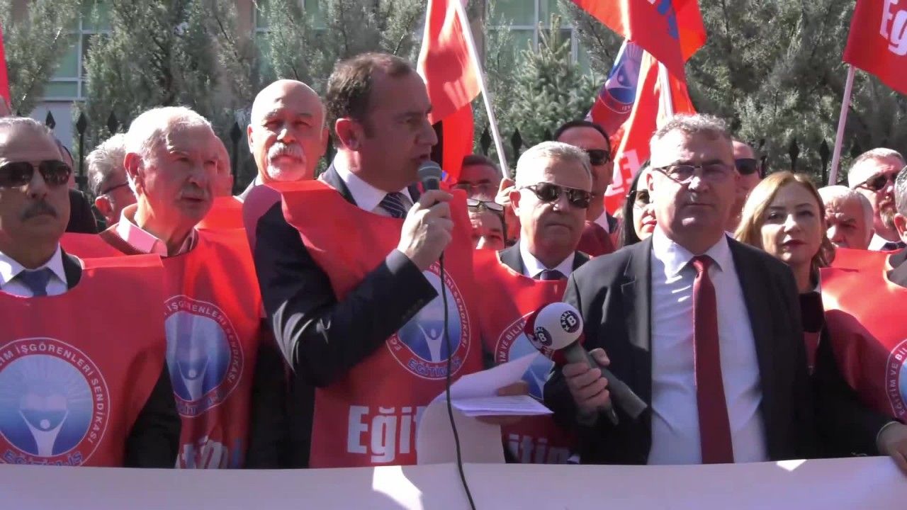 Milli Eğitim Bakanlığı önünde açıklama yapan Eğitim İş Genel Başkanı Kadem Özbay özetle şunları söyledi: