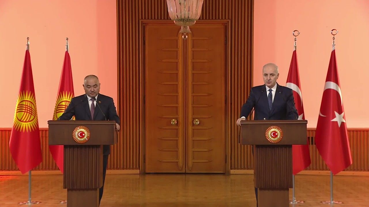 TBMM Başkanı Numan Kurtulmuş, Kırgız Cumhuriyeti Jogorku Keneşi Başkanı Nurlanbek Turgunbek Uulu ile TBMM Tören Salonu’nda ortak basın toplantısı düzenledi. Kurtulmuş, Türkiye ile Kırgızistan arasındaki ilişkilerin parlamentolar düzeyinde de güçlenerek devam ettiğini vurguladı.