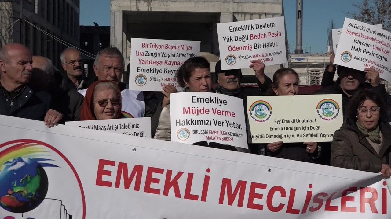 Malatya Kapalı Çarşı'da bir araya gelen emekliler, “Eskiden emekli maaşlarıyla ev, araba hesabı yapılırdı; şimdi zeytin, peynir, yumurta hesabı yapılıyor”, “Çare bulamadınız ya emekliye geçim hakkı ya da seçim hakkı”, “Emeklilik devlete yük değil, bedeli peşin ödenmiş bir haktır”, “Emekliye müjde değil, hakkımızı verin”, “Emekliye verilen sefalet ücreti kabul edilemez” yazılı dövizler taşıdı.